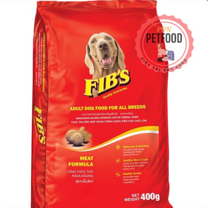 – Fib’s là một sản phẩm thức ăn đầy đủ và cân đối, được phát triển để đáp ứng toàn bộ nhu cầu dinh dưỡng của Chó trưởng thành, mọi giống và mọi kích cỡ. – Fib’s có công thức độc quyền gồm hỗn hợp các loại thịt khoái khẩu của Chó. Fib's của có hai hình dạng của xương & tròn cũng được thiết kế cho chó trưởng thành mà không có chất tạo màu nhân tạo. Lợi ích chính Fib's cho chó trưởng thành là: Cân bằng dinh dưỡng Cho da khỏe mạnh Xương khỏe mạnh