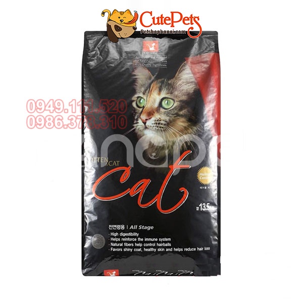 Thức ăn cho mèo, hạt cateyes tải 13.5kg được phối trộn đặc biệt dành cho mèo mọi lứa tuổi để giảm chứng rụng lông, cải thiện bộ lông mèo và cải thiện tiêu hóa.