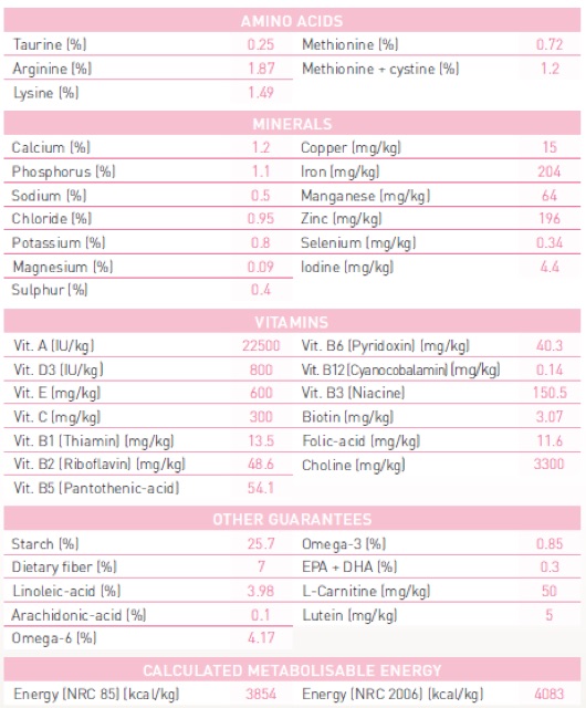 Trong giai đoạn tăng trưởng, hệ thống tiêu hóa của mèo con vẫn chưa phát triển đầy đủ, sự kết hợp của protein có khả năng tiêu hóa cao và các chất xơ thích hợp bao gốm Psyllium và Probiotics giúp thúc đẩy sự cân bằng đường ruột, phát triển hệ tiêu hóa của mèo con và cải thiện chất lượng chất thải.