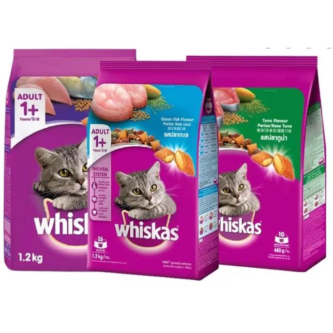 THỨC ĂN CHO MÈO Whiskas Dạng Viên Túi 1.2kg. - Mèo là loài động vật có bản tính săn mồi nhanh nhạy nên cơ thể chúng rất cần được chú ý bổ sung các chất dinh dưỡng cần thiết để luôn lanh lợi và khỏe mạnh. Sản phẩm thức ăn hạt khô Whiskas với 3 hương vị Cá Thu, Cá Ngừ và Cá Biển sẽ cung cấp cho mèo những lợi ích sau: