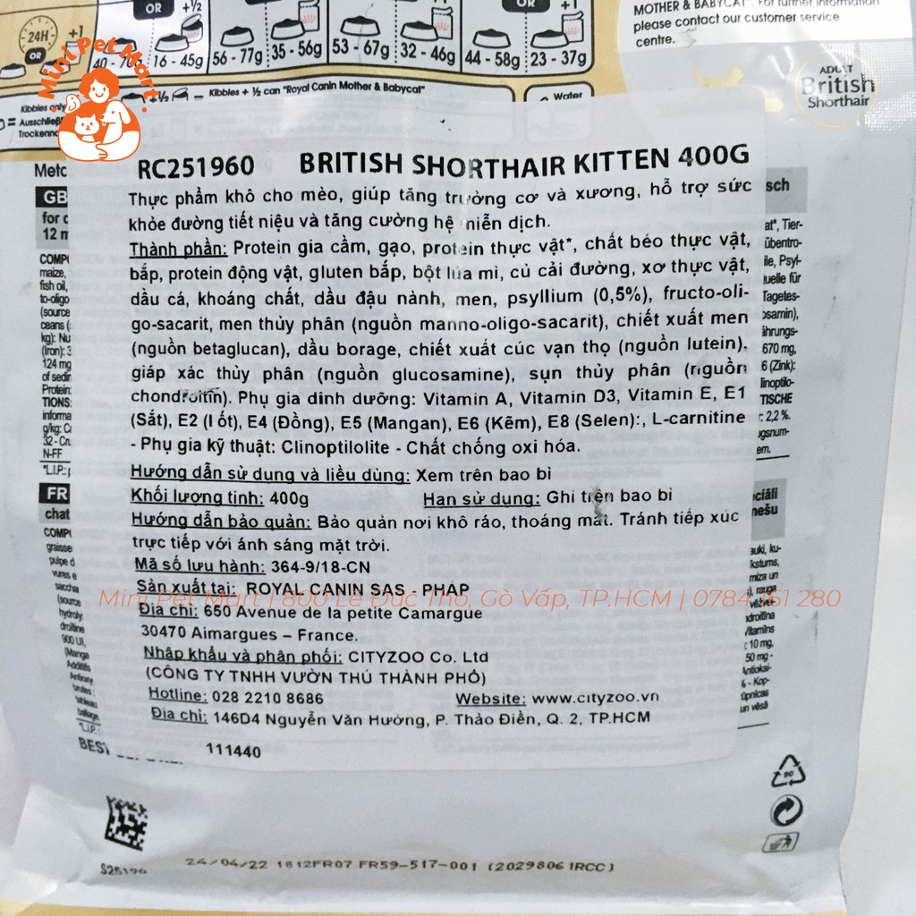 Thức ăn hạt cho mèo con mèo Anh lông ngắn ROYAL CANIN 400g