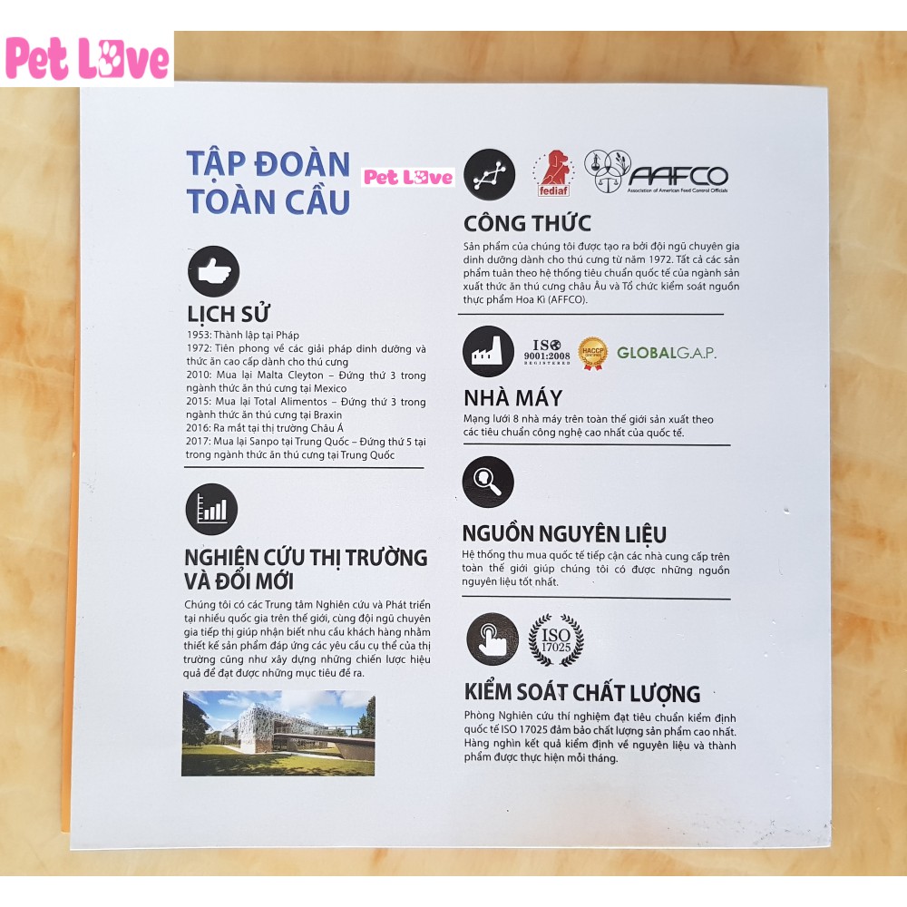 Thành phần Gạo, lúa mì, bột thịt gia cầm, bã nành, mỡ gia cầm (nguồn tự nhiên của Omega 3 và 6), bột thịt cừu, Calci, chiết xuất Yucca, vitamin và khoáng chất khác..