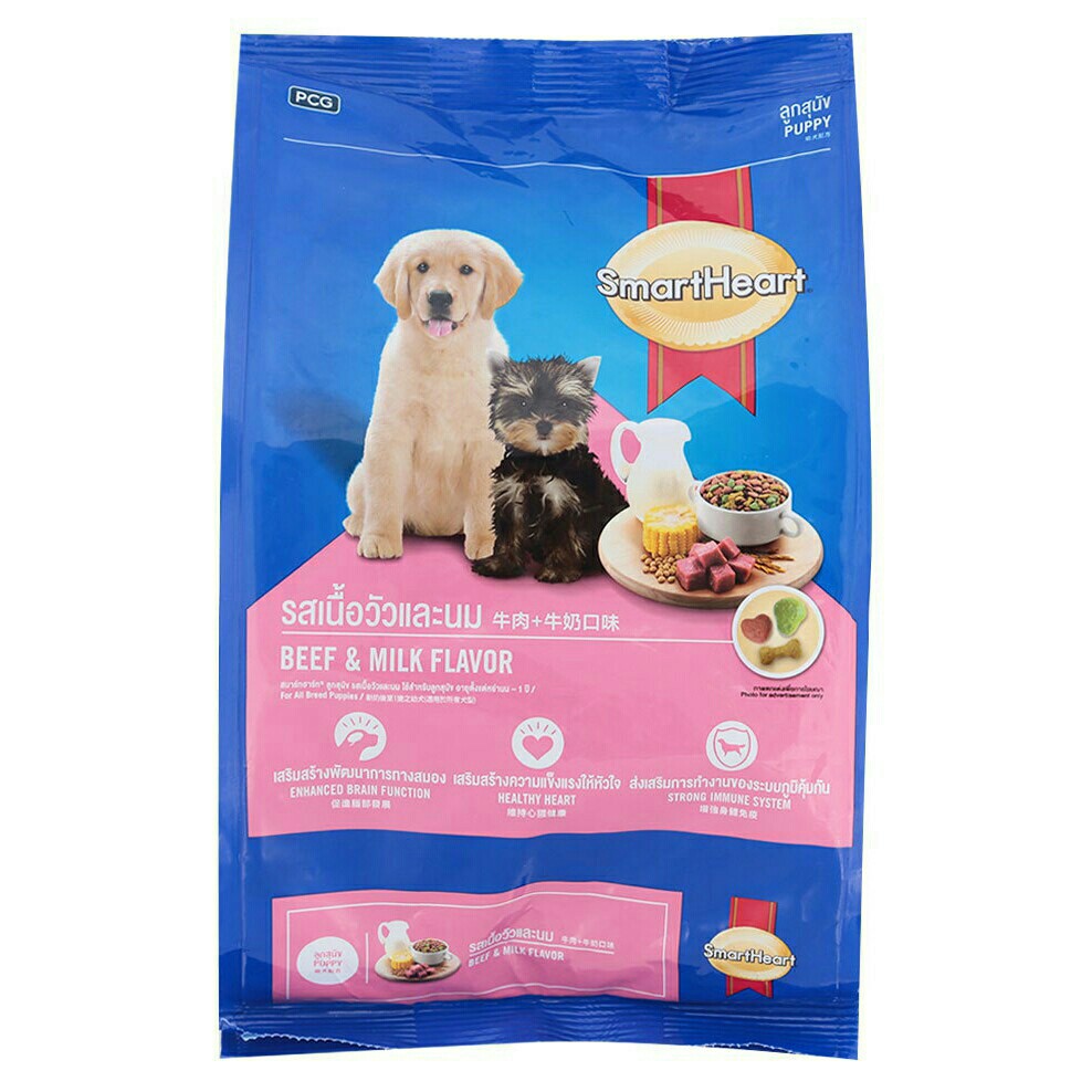 Thức Ăn Hạt Khô Vị Thịt Bò Và Sữa Cho Chó Con Puppy SmartHeart 1.5kg