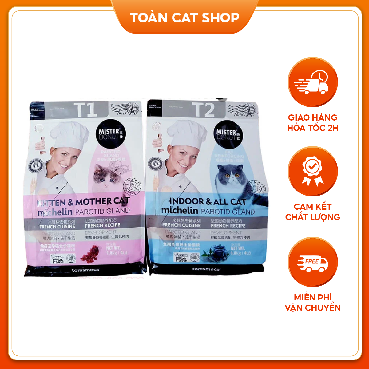 - Mister donut có nhiều dòng sản phẩm phù hợp với đa dạng độ tuổi và tình trạng sức khỏe của mèo.