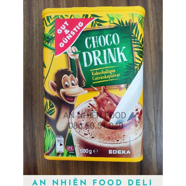 Bột Ca cao uống liền chocolate choco drink Gut & Gunstig Xuất xứ : Đức Nhãn hiệu : Edeka Quy cách : Hộp 800 Gram Bảo quản : Nơi khô ráo thoáng mát Ngày sản xuất và Hạn sử dụng : In trên sản phẩm.
