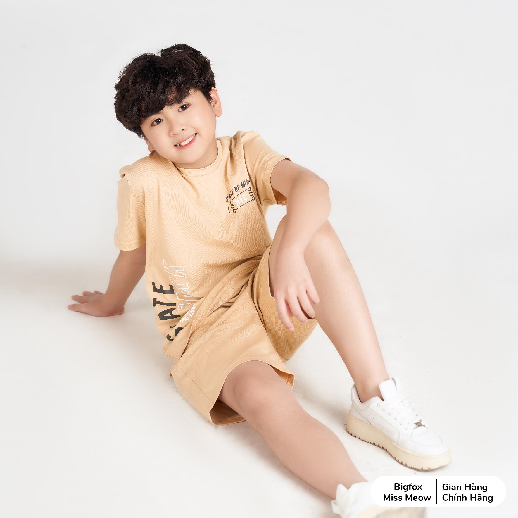 | Bộ thun cho bé trai Bigfox Miss Meow size đại mặc hè dáng cộc tay xuất Hàn chất cotton in Skate cỡ 12,13,14,15 40kg 50kg 1934