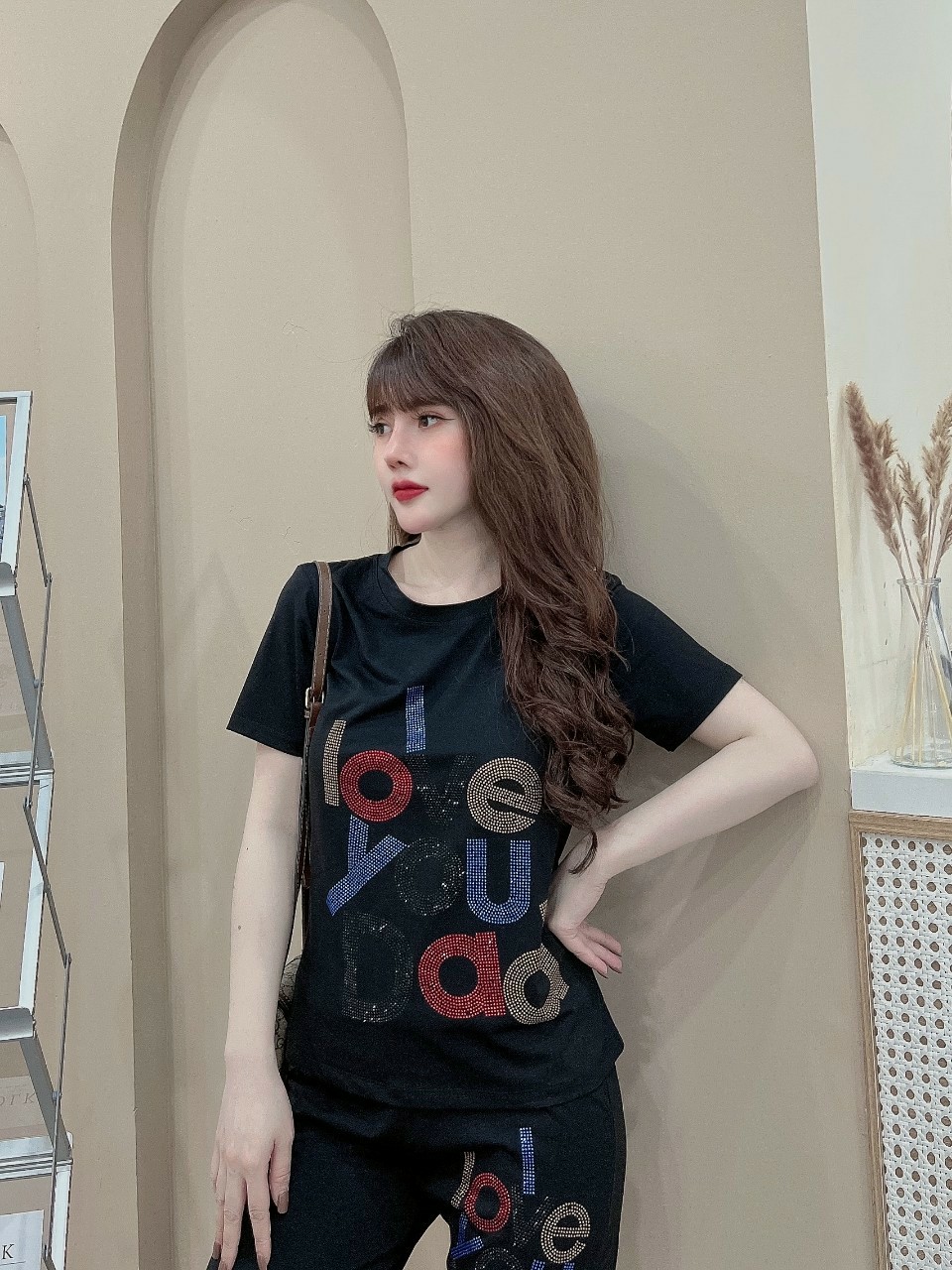 Kiểu dáng thể thao trẻ trung, phối màu thời trang, ko bay không chảy nhão, thun cotton đính cườm đá sang trọng