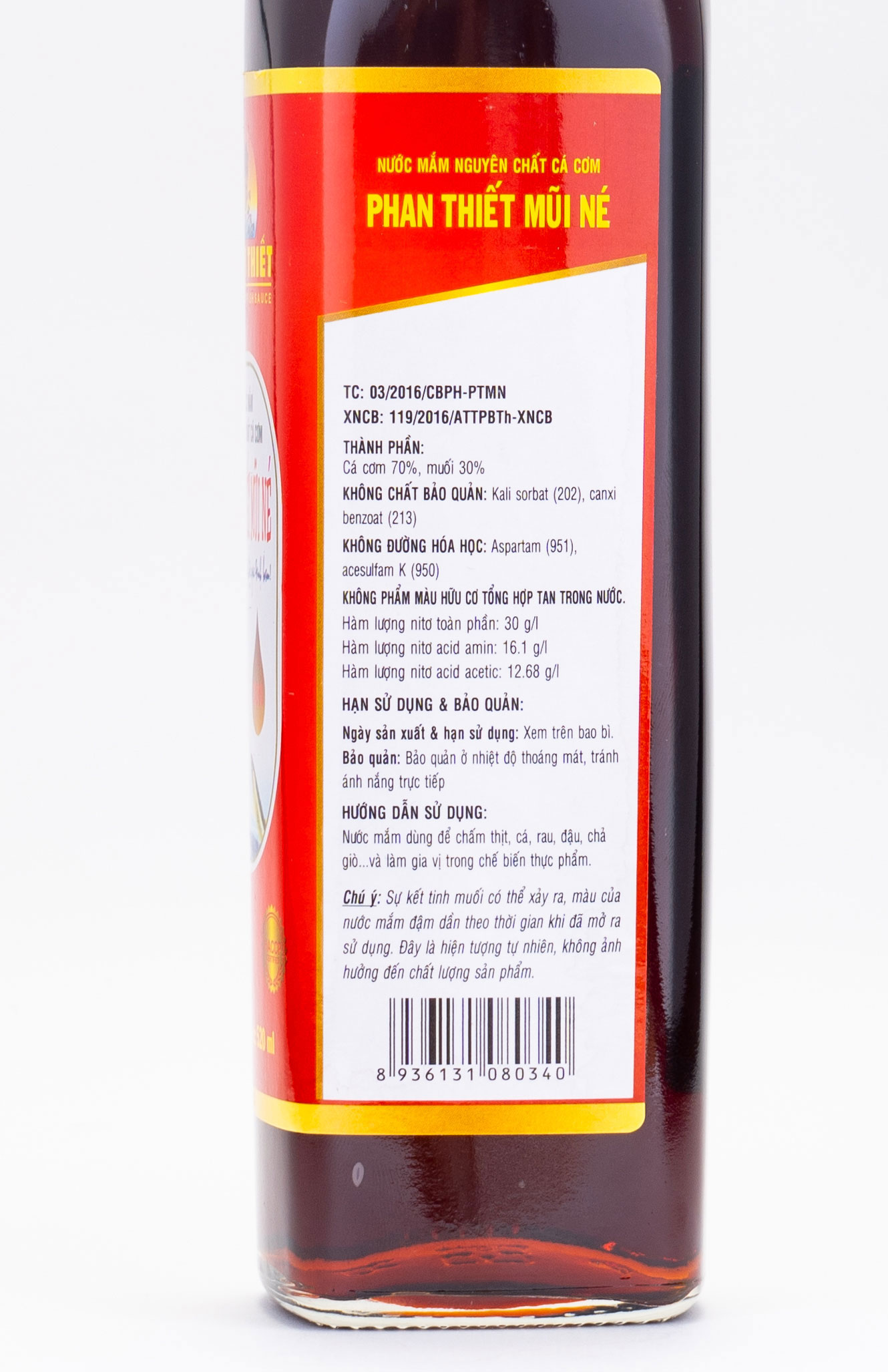 THÀNH PHẦN DINH DƯỠNG trong Nước Mắm Cá Cơm Truyền Thống Phan Thiết Mũi Né 30N (30 độ Đạm) 520ml