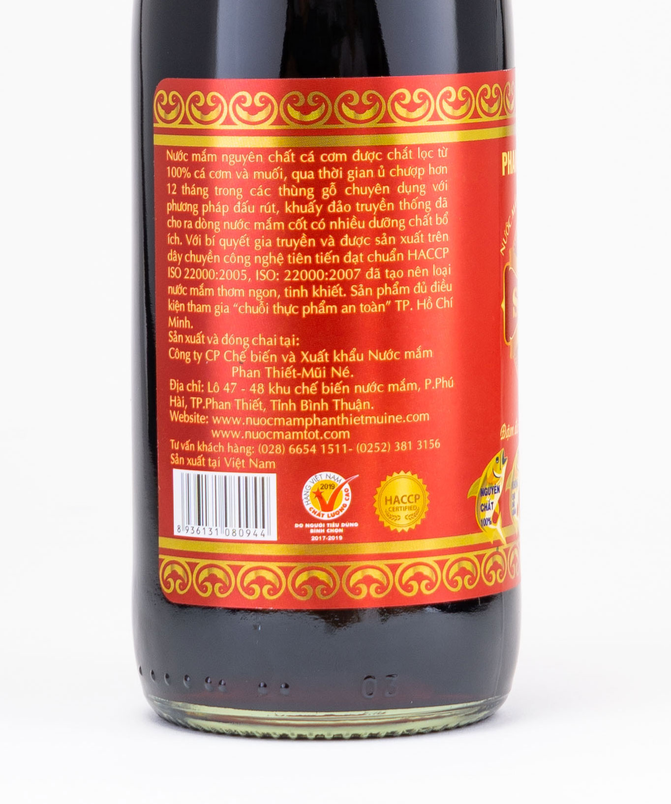Nước mắm Phan Thiết Mũi Né được chắt lọc từ 100% cá cơm tươi và muối. Với bí quyết gia truyền, được ủ chượp theo phương pháp truyền thống tự nhiên và sản xuất trên dây chuyền công nghệ tiên tiến quy trình khép kín, đạt tiêu chuẩn HACCP. Từ đó đã tạo ra dòng nước mắm nguyên chất cá cơm mang hương vị ĐẬM ĐÀ THƠM NGON - TINH KHIẾT BỔ DƯỠNG đạt chất lượng đúng theo tiêu chuẩn TCVN 5107 : 2003.