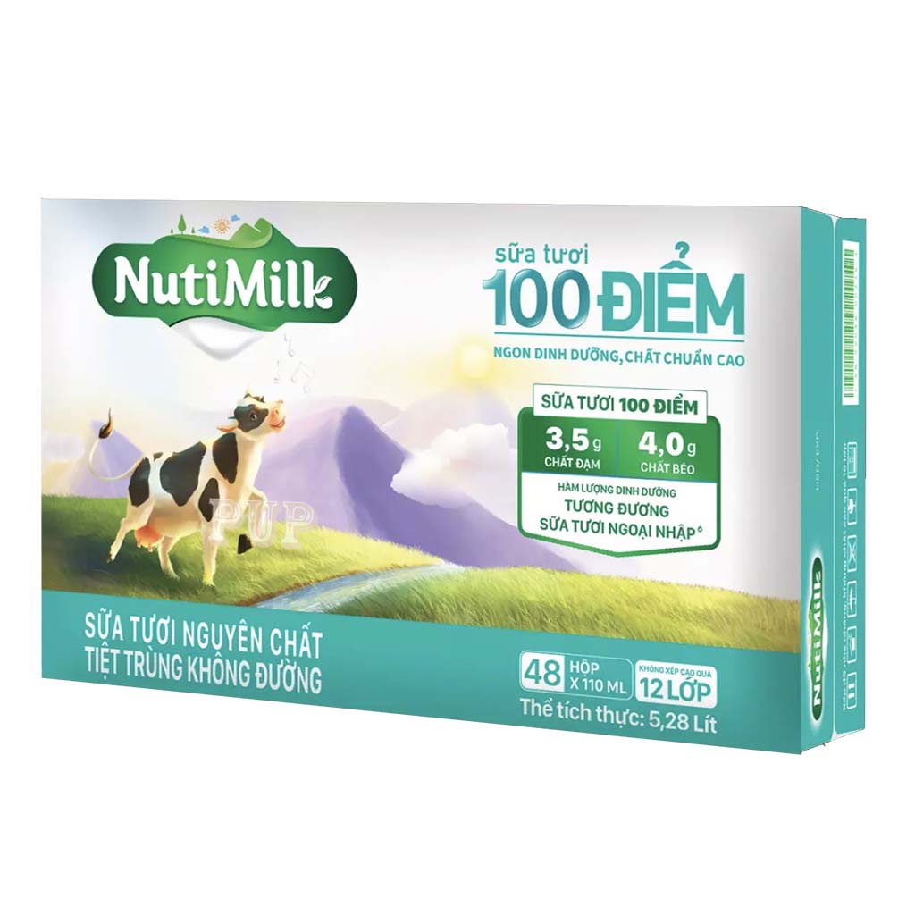 Giới thiệu Thùng 12 Lốc Sữa Tươi Tiệt Trùng 100 Điểm Không Đường Nutimilk 110ml