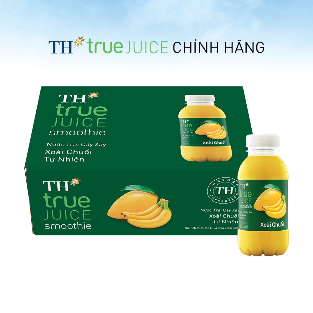Giới thiệu Thùng 24 chai nước trái cây xay xoài chuối tự nhiên TH True Juice 300ml (300ml x 24)