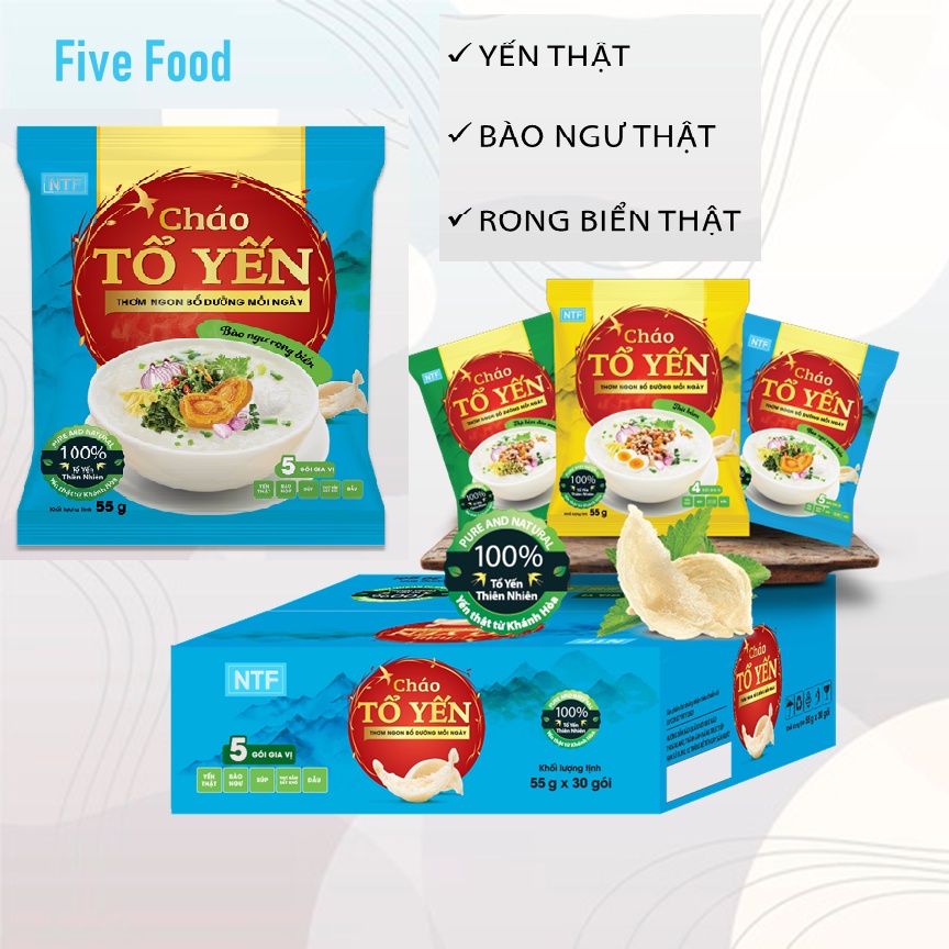 Thùng 30 Gói Cháo Tổ Yến Khánh Hòa FiveFoog Vị Bào Ngư Rong Biển