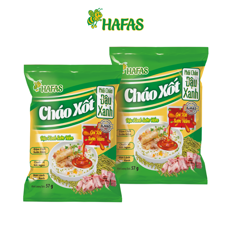 ► Cháo Xốt Đậu xanh Sườn hầm HAFAS là sự kết hợp hoàn hảo giữa đậu xanh mát lành và sườn hầm đậm vị, được sản xuất bằng công nghệ B-MAS hiện đại và an toàn, Cháo Xốt Đậu xanh Sườn hầm HAFAS mang lại một bữa ăn hoàn hảo cho tất cả mọi người.