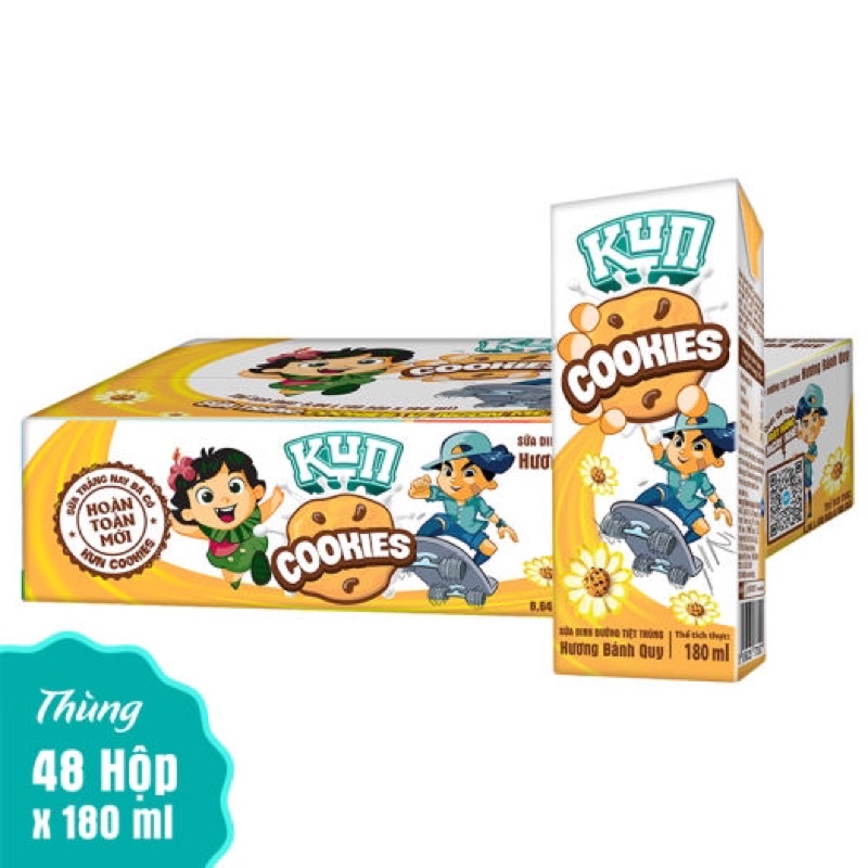 Thực phẩm và đồ uống > Sữa - trứng > Sữa > Sữa tiệt trùng || Thùng 48 Hộp Sữa Kun Vị Cookies - 180ml