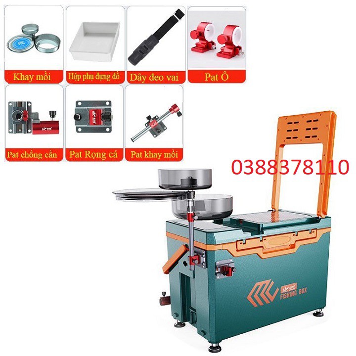 *Thông Số Kĩ Thuật : - Thương hiệu: MC jiadiaoni (thương hiệu phụ kiện top 1 Trung Quốc) - Thể tích : 32L - Màu Sắc : 2 Loại + Đem Cam + Đen Đỏ - Trong lượng ≈ 6kg - Kích thước : + Bên ngoài : 53 x 30 x 35 cm + Bên trong : 46 x 23 x 28 cm - Thiết kế thông minh : + Có các ngăn lưu trữ đa năng + Chân ghế có thể thu gọn hoặc mở rộng tùy ý, giải quyết mọi địa hình không bằng phẳng + Công nghệ cách nhiệt cực tốt, giữ nhiệt bên trong cực lâu + Có tựa lưng giúp anh em cần thủ có thể ngả lưng thoải mái * Ưu điểm nổi bật : Độ bền cao, Độ cách nhiệt và chịu tải tốt * Bộ phụ kiện kèm thùng 1. Bát đựng mồi 3 tầng trong suốt 2. Pat khay mồi 3. Pat chống cần 4. Pat rọng cá 5. Dây đeo vai 6. Hộp phụ trong thùng 7. Pat Ô