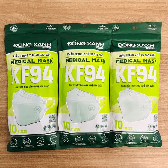 Tên sản phẩm: [Thùng] Khẩu Trang KF94 Đồng Xanh Premium (10 Cái/Túi) - 30 Túi/Thùng