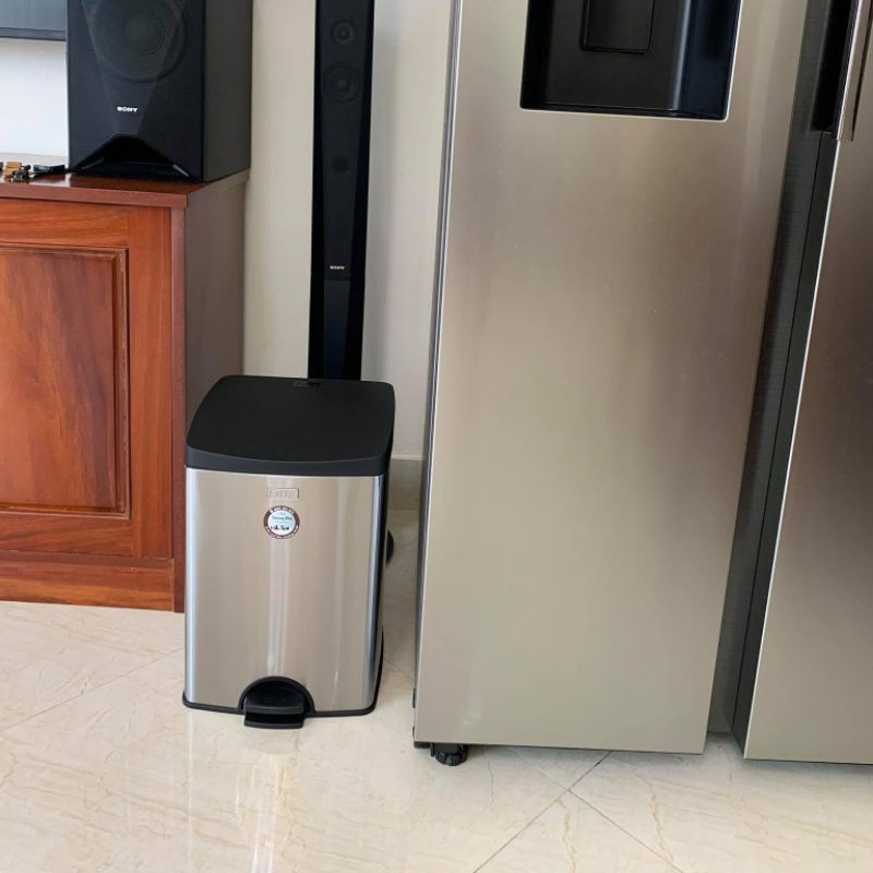 💦 Thùng rác FITIS đạp chân inox cao cấp. 💦 Vỏ thùng được làm bằng Inox cao cấp, phủ nano chống vân tay bền bỉ và sang trọng. 💦 Nắp kháng khuẩn thông minh có thể diệt trừ đến 99% các loại vi khuẩn như Ecoli, cầu khuẩn. 💦 Ngăn đựng sáp dưới nắp thùng mang lại hiệu quả chống côn trùng tối ưu. 💦 Sáp chống côn trùng được thiết kế đặt dưới nắp thùng, giúp kháng khuẩn kháng mùi hôi từ rác thải, mỗi lần mình mở nắp ra không cảm thấy khó chịu từ mùi hôi thối của rác thải nữa giúp bảo vệ sức khỏe cho chúng ta luôn tốt. 💦 Công nghệ giảm chấn giúp kiểm soát chuyển động đóng/mở nhẹ nhàng. ✅Loại 15L (27cm x 30cm x 45cm )