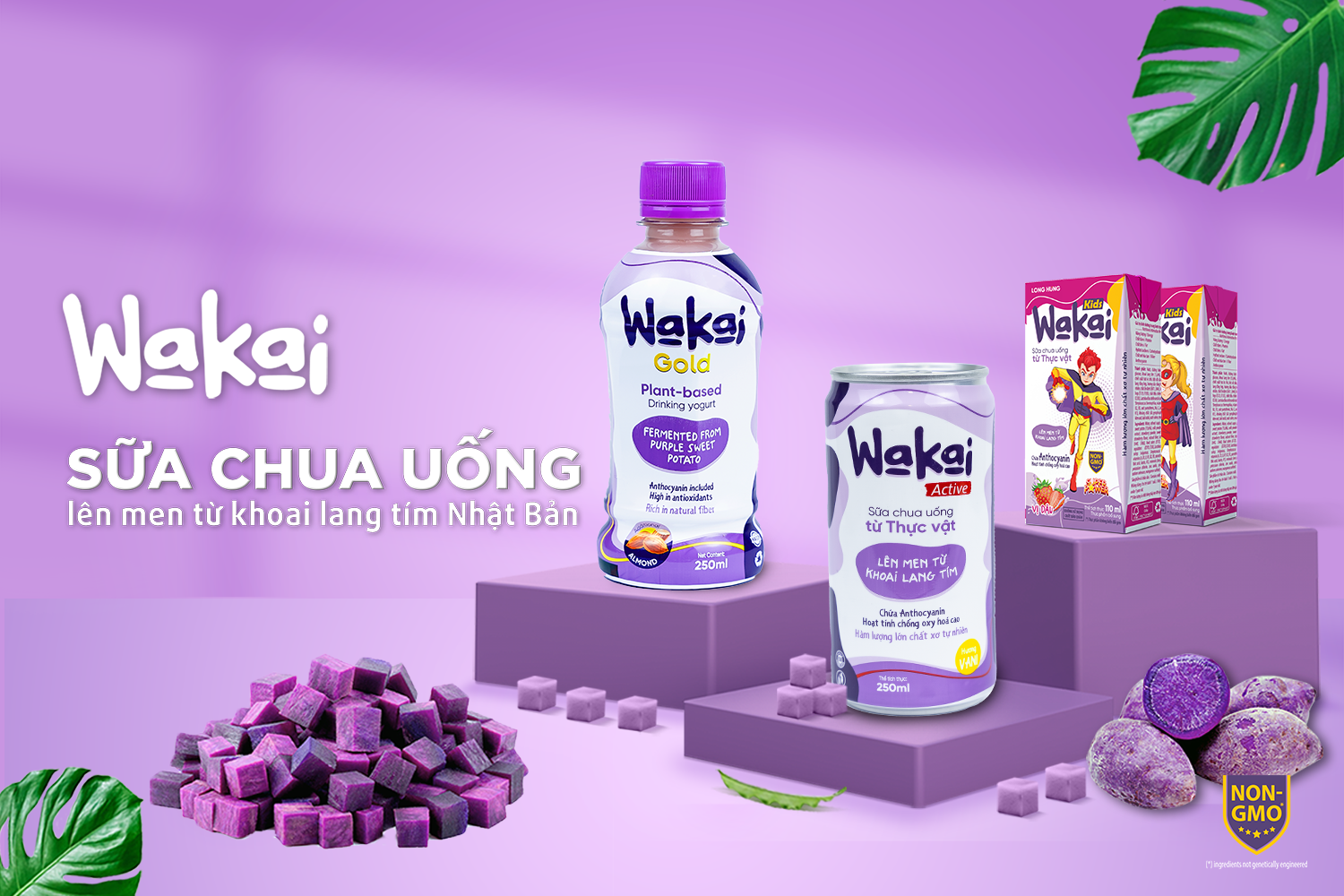 Căn cứ trên kết quả đề tài khoa học cấp nhà nước về NGHIÊN CỨU CÔNG NGHÊ CHẾ BIẾN MỘT SỐ SẢN PHẨM TỪ CỦ KHOAI LANG TÍM GIỐNG NHẬT BẢN của Viện nghiên cứu Rau Quả, công ty Long Hưng đã phát triển thành công sản phẩm sữa chua uống Khoai lang tím với tên gọi Wakai. Đây sản phẩm sữa chua uống đâu tiên được sản xuất từ thực vật, lên men và tận dụng nhiều giá trị dinh dưỡng của củ Khoai lang tím giống Nhật Bản.