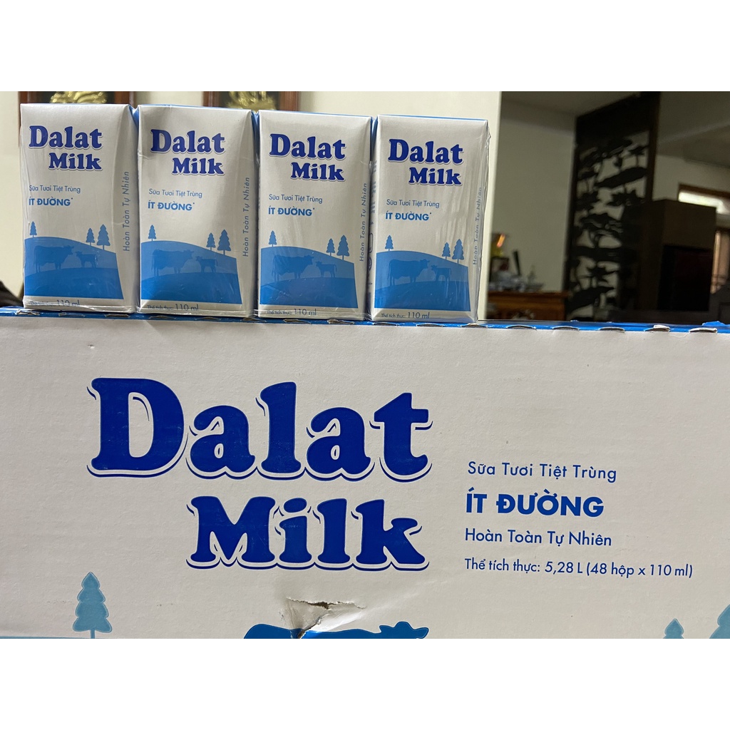 THÙNG SỮA TƯƠI TIỆT TRÙNG DALAT MILK ÍT ĐƯỜNG 48 hộp 110ML