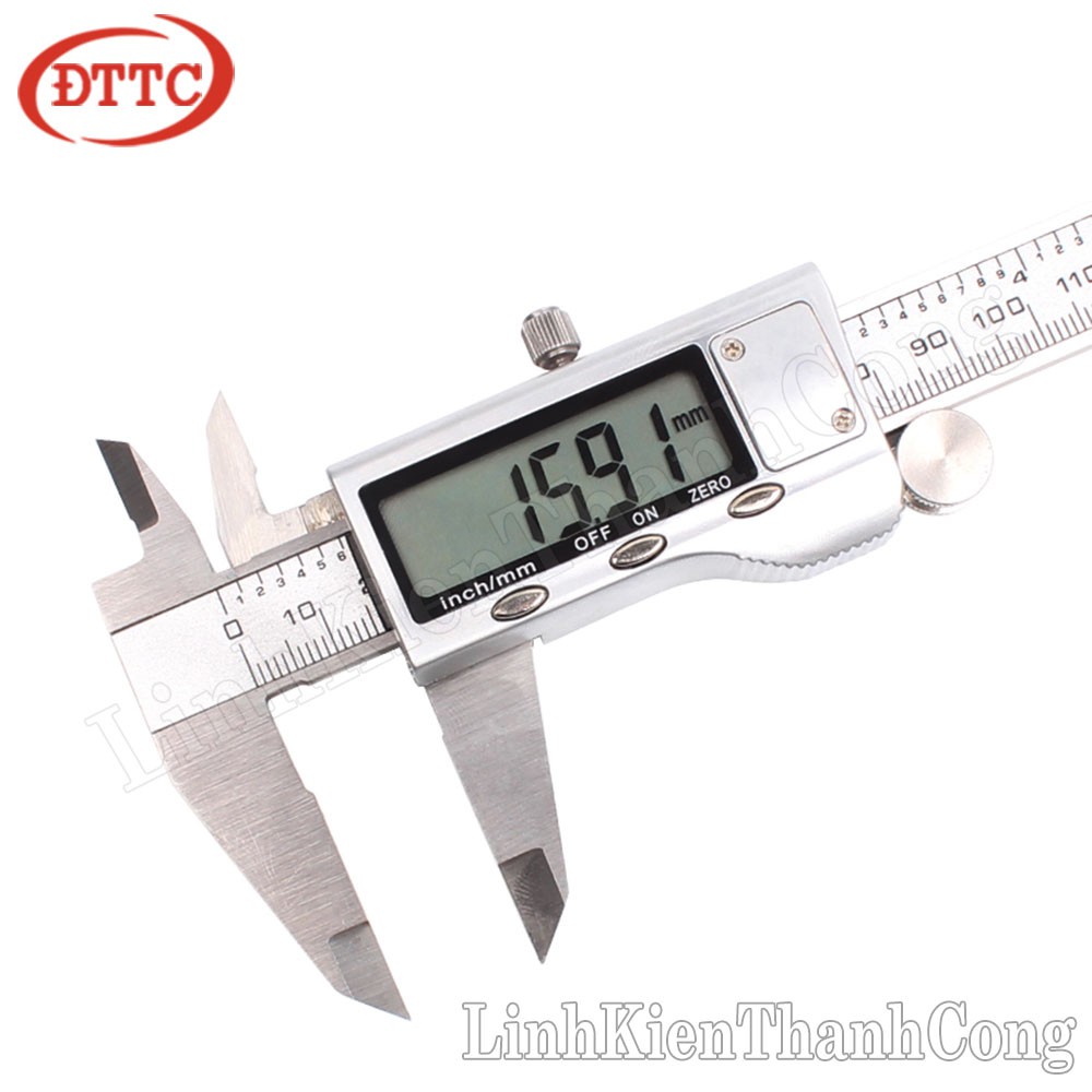 THÔNG SỐ KĨ THUẬT - Chất liệu: Kim loại cao cấp - Hiển thị thông số qua màn LCD - Có thang đo thủ công (không pin) - Phạm vi đo: 0-150mm - Đơn vị đo: mm/inch - Hoạt động trong môi trường độ ẩm dưới 80% - Độ nhám cao, chống trượt