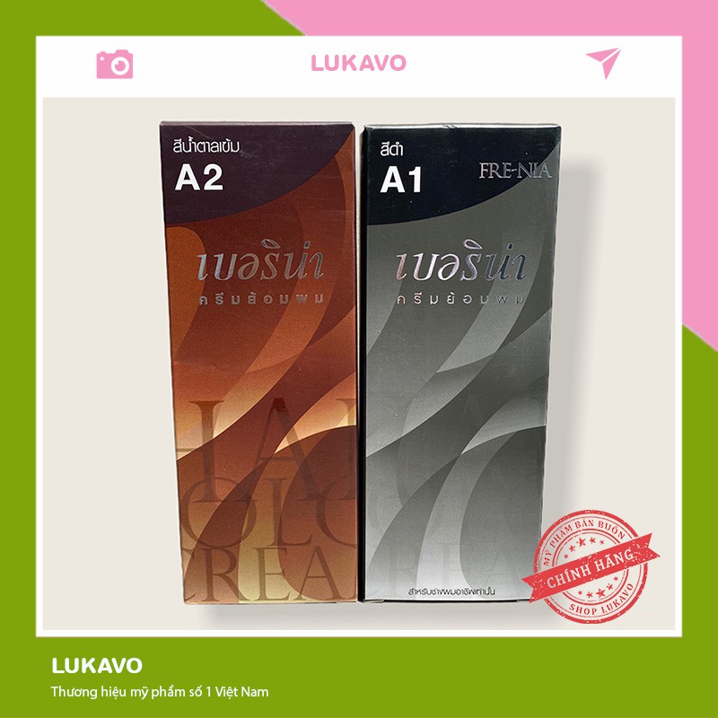 có 2 màu : A1: màu đen A2: màu nâu Hướng dẫn nhuộm tóc: Bước 1: Chăm sóc tóc trước khi nhuộm - Dưỡng tóc + Các loại thuốc nhuộm đều chứa những thành phần hoá học có thể làm tóc khô. Vì thế, trước khi nhuộm, bạn cần lên kế hoạch chăm sóc đặc biệt: ủ tóc, dầu gội dưỡng ẩm và phục hồi… Đặc biệt, tránh hành hạ mái tóc như duỗi, uốn, làm xoăn… ít nhất 1 tuần trước đó. . Chuẩn bị không gian tiến hành nhuộm Dọn dẹp phòng tắm và trải khăn tắm cũ xuống sàn + Rút găng tay ra khỏi hộp và đặt gọn gàng bên cạnh vòi hoa sen + Mặc một chiếc áo cũ và chuẩn bị một chiếc lược cũ Bước 2: Thao tác nhuộm - 1. Đọc kĩ chỉ dẫn - Tôn trọng các bước nhuộm + Chuẩn bị màu nhuộm (pha thuốc theo tỉ lệ 1:1 đã chỉ định) Chia tóc ra thành từng lớp mỏng và cố định bằng cặp mỏ vịt. Chia lớp tóc nào, bôi ngay thuốc nhuộm lên lớp tóc đó. + Bôi thuốc lần lượt lên thân tóc, đuôi tóc rồi mới đến chân tóc do chân tóc bắt màu nhanh hơn các vùng khác. Đừng ngại dùng đầu ngón tay để miết thuốc đều lên tóc + Sau khi trải thuốc đều lên tóc, để một lúc theo thời gian chỉ định (thường là 30-45 phút). + Sau đó, gội đầu dưới vòi nước ấm và xả mạnh cho đến khi thấy nước trong mới dừng. Bước 3: Dưỡng tóc và cách giữ tóc nhuộm bền màu + Nên lựa chọn các sản phẩm chăm sóc tóc như dầu gội, dầu dưỡng, kem ủ…dành riêng cho tóc nhuộm và màu bạn nhuộm. + Màu tóc nhuộm dễ nhạt và xỉn trước tác động của mặt trời, muối biển, clo, mồ hôi…Vì thế, nên bảo vệ tóc khi ra trời nắng với mũ rộng vành, khăn trùm qua tóc… Tránh gội đầu bằng nước nóng và sấy tóc để tóc đỡ khô, chẻ cũng như giữ được màu nhuộm bền hơn. + Nên tỉa phần đuôi của tóc nhuộm ít nhất 2 tháng một lần để loại bỏ phần tóc chẻ và giúp màu tóc được đồng đều.