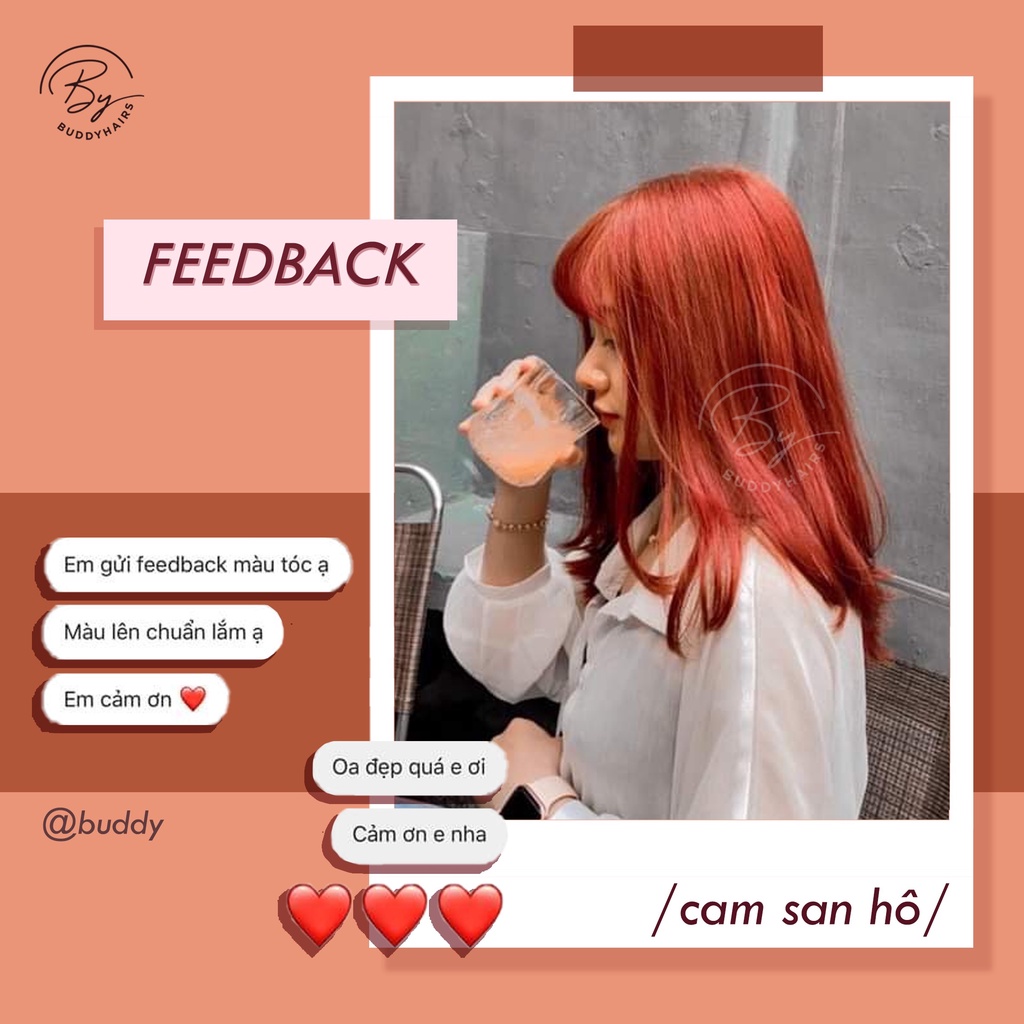 Giới thiệu Thuốc nhuộm tóc CAM SAN HÔ / CAM SÁNG của Buddyhairs tặng thuốc nâng tone 100K, găng tay , mũ trùm, trợ nhuộm tiện ích