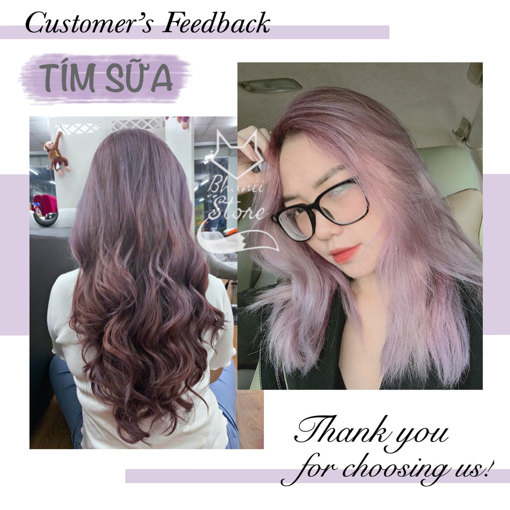 Độ giữ màu: - Thuốc nhuộm tóc tím sữa bhanii store có thể giữ khoảng 2-4 tuần tuỳ chất tóc.