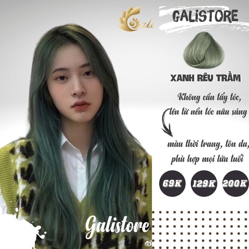 Galistore cứ ra mới màu nào là xu thế hot màu đó, cập nhật mã màu mới nhất chuẩn tây của xanh rêu trầm, lên màu dễ dàng , dễ đẹp lại hiện đại , tuy cùng tông xanh nhưng khác hẳn với các tông xanh lá - xanh rêu trước đây mà xanh này mang đến sự tươi mới , trẻ trung và cá tính , b nào băn khoăn sợ nổi quá vì còn đi học thì hãy bỏ qua nỗi sợ đó đi vì màu này ko quá sáng đâu nha ;) ———————— **QUYỀN LỢI CỦA NGƯỜI MUA: -Shop cam kết chỉ bán hàng chuẩn 100% chính hãng. - Nếu có bất kỳ thắc mắc gì về sản phẩm trước và sau khi nhận hàng shop đểu sãn sàng giải đáp. **Thông tin sản phẩm gồm có: - thuốc nhuộm tóc (100ml) - oxy trợ dưỡng ( 100ml) *Công dụng: Kem nhuộm dưỡng tóc hạn chế tối đa Amoniac Olea Color chiết xuất từ tinh dầu tự nhiên: tinh chất hoa sơn trà, tinh chất hoa hướng dương và tinh dầu dừa, giúp tóc giữ màu bền lâu, sáng bóng và khỏe mạnh từ sâu bên trong, che phủ được tóc bạc. Kem nhuộm dưỡng tóc không Amoniac Olea Color có sẵn nhiều tông màu cho khách lựa chọn ***Hướng dẫn chọn màu: - Đối với những tóc đã nhuộm, có nền tóc sáng thì sẽ nên chuẩn màu trong hình. - Đối với những tóc đen nguyên bản, tóc chưa qua xử lý hóa chất hay quá đen thường không dễ lên màu. Nên nhuộm một lần đầu để tóc mở màu và nền sáng, sau đó nhuộm lần thứ 2 tóc sẽ lên chuẩn màu hình ảnh. Đây là đặc điểm của những loại thuốc nhuộm tóc chiết xuất từ thiên nhiên. -Không như những thuốc chứa nhiều hóa chất sẽ làm tóc sơ, hư tổn sau khi nhuộm. Kem nhuộm dưỡng tóc không Olea Color chứa nhiều tinh dầu từ các loại thực vật vừa nhuộm vừa dưỡng tóc, khi nhuộm xong tóc sẽ rất bóng và mượt. Đặc biệt độ bền màu cao. - Đối với các màu thời trang, màu sáng cần tẩy tóc. - Sử dụng theo độ dài tóc: 0,5 hộp cho tóc ngắn, 1 hộp cho tóc qua vai chút, 2 hộp cho tóc dài. **Hướng dẫn sử dụng: - Đeo găng tay nilon - Sử dụng ngay cho tóc khô. - trộn thuốc nhuộm vào oxy trợ dưỡng - bôi trực tiếp lên toàn bộ tóc và Massage. - Thời gian xử lý: • 15-20 phút tạo bóng và lên màu cơ bản cho tóc. • 40 phút để phủ màu hoàn toàn cho tóc đen hoặc tóc tự nhiên. • 60 -70 phút dành cho tóc khó lên màu. - Nếu sử dụng tông màu đỏ, đậm hoặc tím, nên xả tóc với dầu gội làm sạch nhẹ nhàng. - Sau khi xả kem nhuộm bằng nước sạch, không cần dùng thêm dầu gội. **Thông tin thương hiệu: - Thuốc nhuộm tóc propession dòng salon tại Ligastore • hạn chế tối đa Amoniac => mùi hương dịu nhẹ. • Sử dụng tinh dầu hoa hướng dương, hoa sơn trà và tinh dầu dừa làm mềm mượt tóc và không hại tóc. • Giữ màu lâu - dễ sử dụng. #thuocnhuomtocnaureu #thuocnhuomtocmauxanhreu #nhuomtocmaureuden #maunhuomtocxanhtram #thuocnhuomtocxanh #thuocnhuomtocxanhla