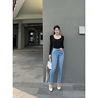 Quần Ống Loe Xẻ Gân CT Jeans Cạp Cao Vải Umi Co Giãn Không Nhăn Ôm Trơn Siêu Đẹp