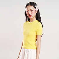 DOTTIE - Áo kiểu vải tweed phối nơ - Vàng - T0691