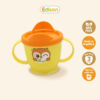 Đồ dùng ăn dặm cho bé MADE IN KOREA -Cốc tập uống Inox 2 lớp có nắp đậy Silicon Edison hình Cú mèo (Quai 2 bên) 5592