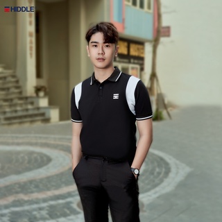 Áo polo nam cổ bẻ HIDDLE vải cotton cá sấu cao cấp trẻ trung tay phối màu trắng đen 25112101