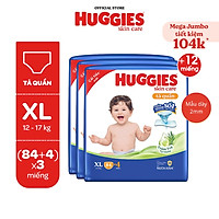 [MUA 4 TẶNG 1] Tã quần Huggies Skincare Mega Jumbo XL84+4 Mẫu Dày 2mm