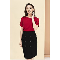 Đầm Thiết Kế Dáng Ôm A Luperi LFV3288 Tay Bồng Cổ Tròn Phối Túi Cúc