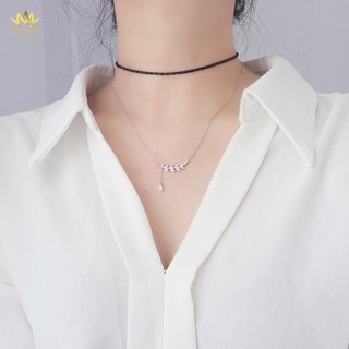 MIRASON - Dây Chuyền Lá Nguyệt Quế Đính Đá Trắng Lấp Lánh, Bạc 925 Cao Cấp - MDC017