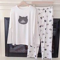Bộ đồ ngủ tay dài quần dài cotton 126 mèo dễ thương