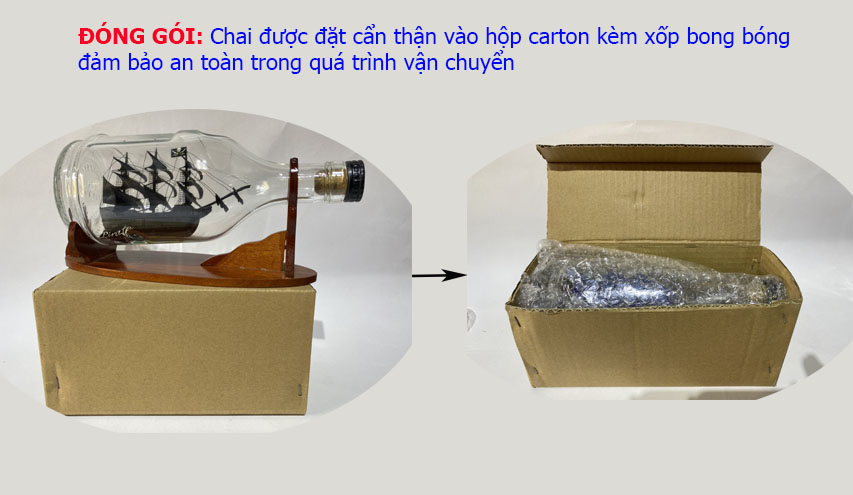 • ĐÓNG GÓI: Chai được bọc xốp bong bóng cẩn thận trong hộp carton, đảm bảo an toàn trong quá trình vận chuyển