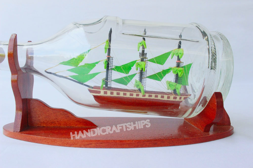 • Thuyền đã được lắp ráp hoàn chỉnh trong chai và sẵn sàng để trưng bày.