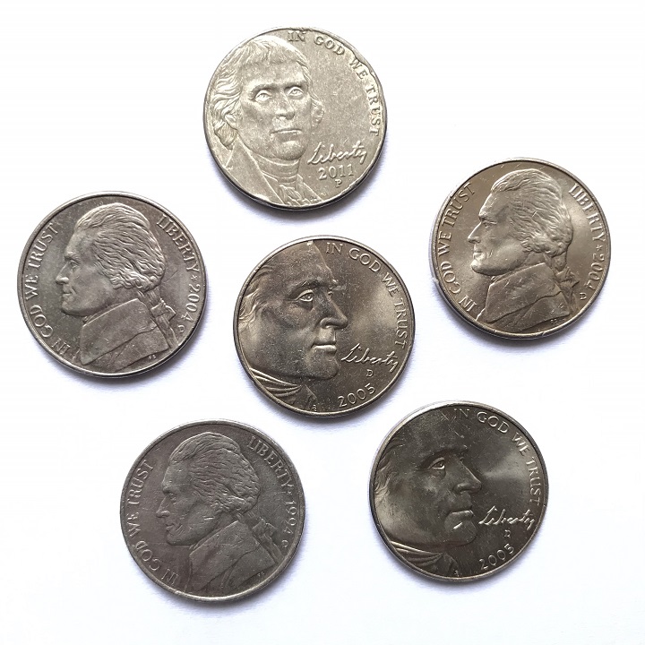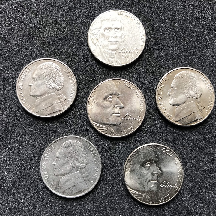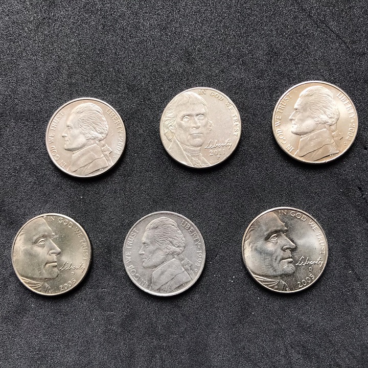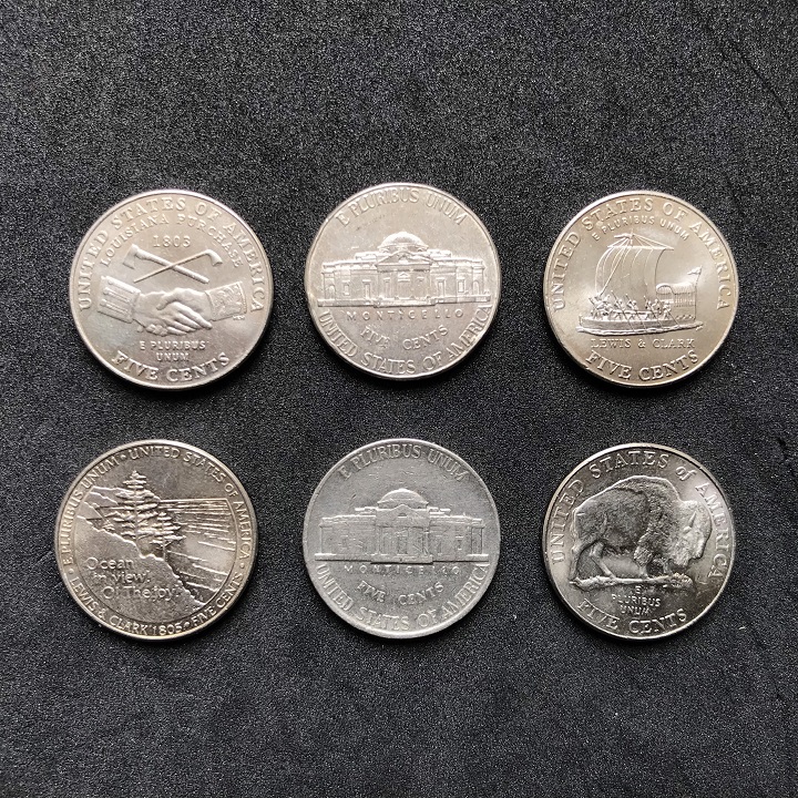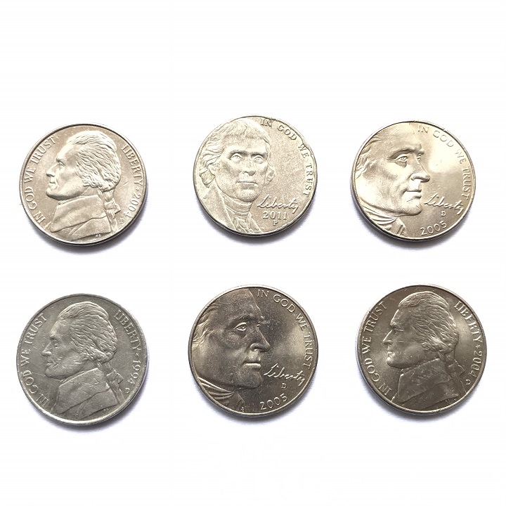 Bộ sản phẩm | 1x Bộ 6 xu Jerferson 5 cent của Mỹ. |
