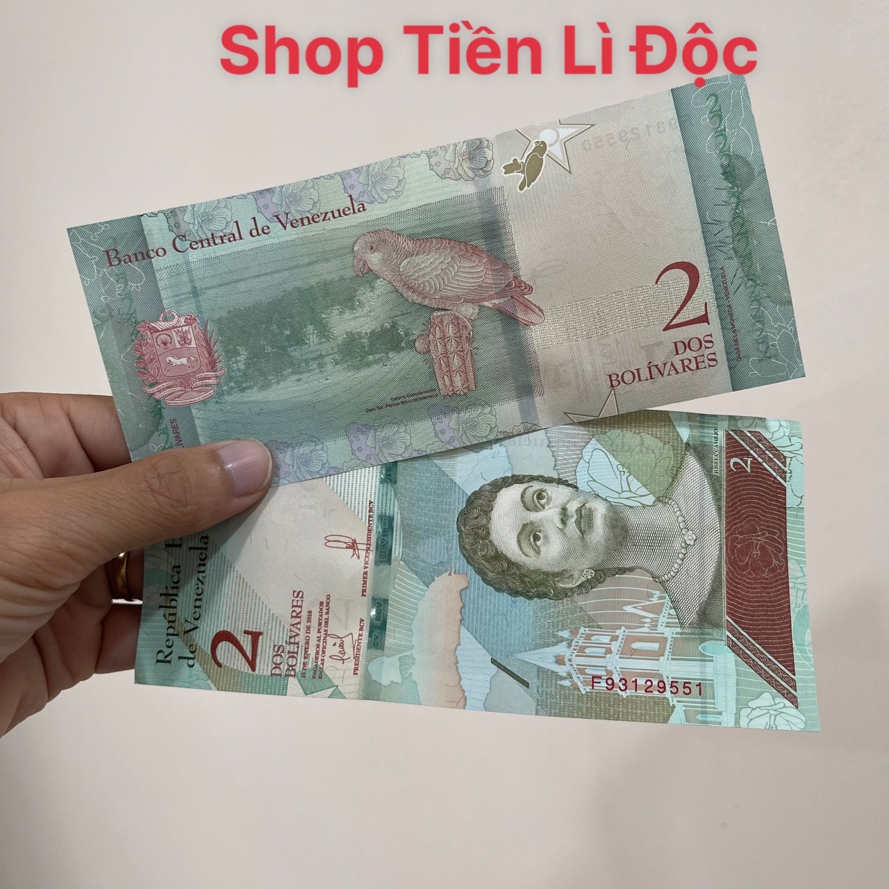 Sản phẩm được giao là 1 tờ tiền Venezuela mệnh giá 2 bolivares mới 100% in hình con vẹt và nữ anh hùng dân tộc của Venezuela xinh đẹp. Tiền thật của Venezuela nhé anh chị em.
