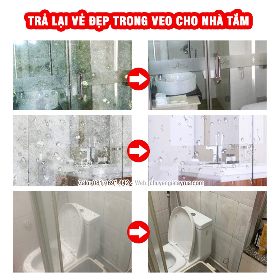 Combo Dung Dịch Tẩy Cặn Canxi Vách Kính Nhà Tắm, Gương Nhà Tắm Ố Mốc (Kèm bộ phụ kiện 4 món)