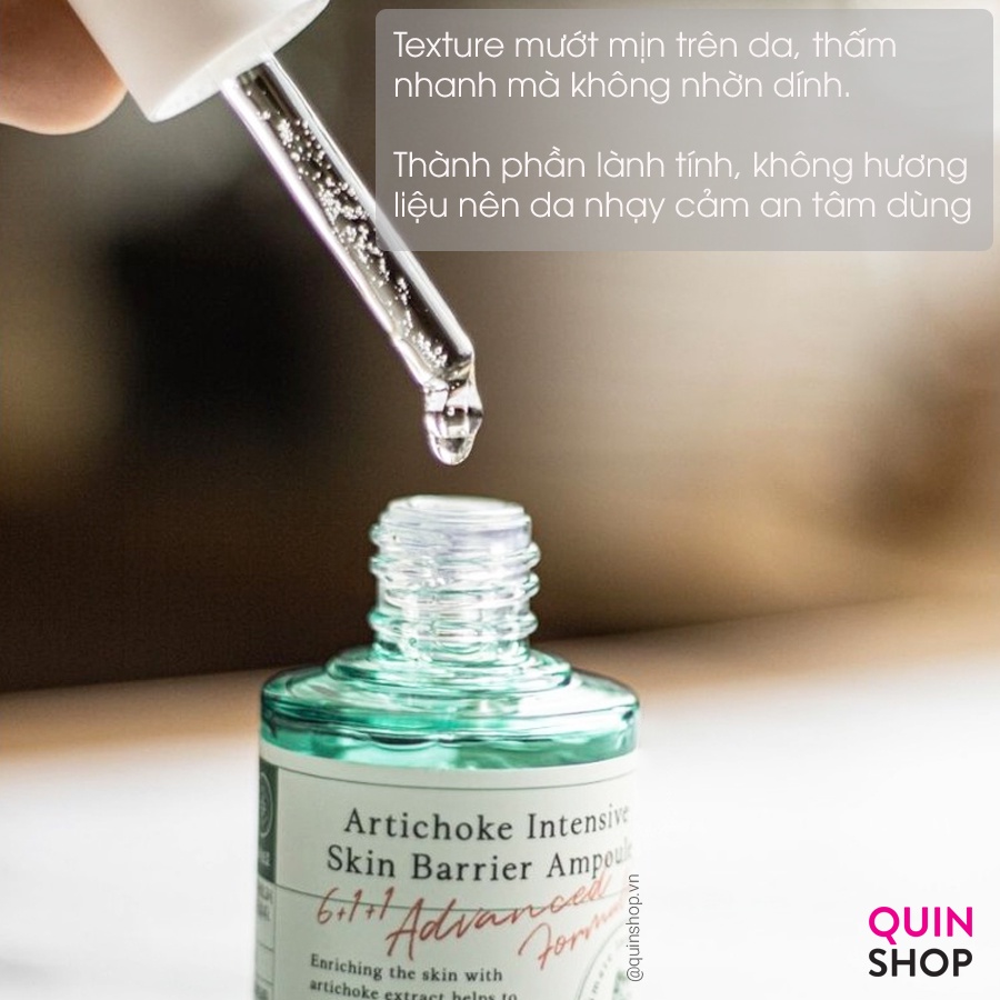 Sau khi cực khổ đối phó với lũ mụn đáng ghét thì chắc chắn rằng làn da của chúng ta sẽ bị tổn thương và yếu đi, chúng sẽ ngày càng trở nên tồi tệ hơn nếu không được chăm sóc da đúng đắn, khoa học. Nhưng các cậu cũng đừng vội lo nhé bởi đã có bạn “Artichoke Intensive Skin Barrier Ampoule” tới từ nhà AXIS - Y đã chính thức có mặt trên kệ nhà Quin để đồng hành cùng chúng ta trên con đường lấy lại làn da khỏe mịn như hằng mong muốn. Nhỏ mà có võ đấy các cậu ạ. Bây giờ thì cũng tớ tìm hiểu bạn nhỏ này có công dụng tuyệt vời như thế nào nhé