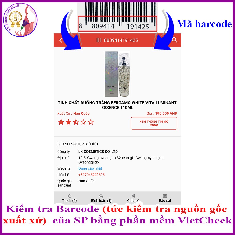 Giới thiệu Tinh chất Bergamo White Vita Luminant Essence dưỡng ẩm tái tạo và làm trắng da 110ml Hàn Quốc