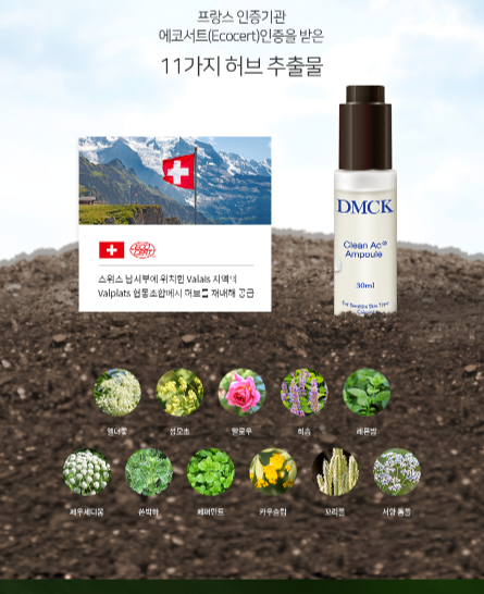Tinh chất cô đặc Clean Ac với Chiết xuất 11 lọai thảo dược đã được chứng nhận hữu cơ (Ecocert) của Pháp. Các loại thảo dược được trồng và cung cấp bởi hợp tác xã Valplats ở vùng Valais Tây Nam Thụy Sĩ như Hoa cơm cháy, Cây Alchemilla, Cây cẩm quỳ, Cây bài hương, Bạc hà chanh, Peucedanum, Bạc hà đắng, Bạc hà Âu, Hoa anh thảo, Cây thủy cự, Cúc vạn diệp