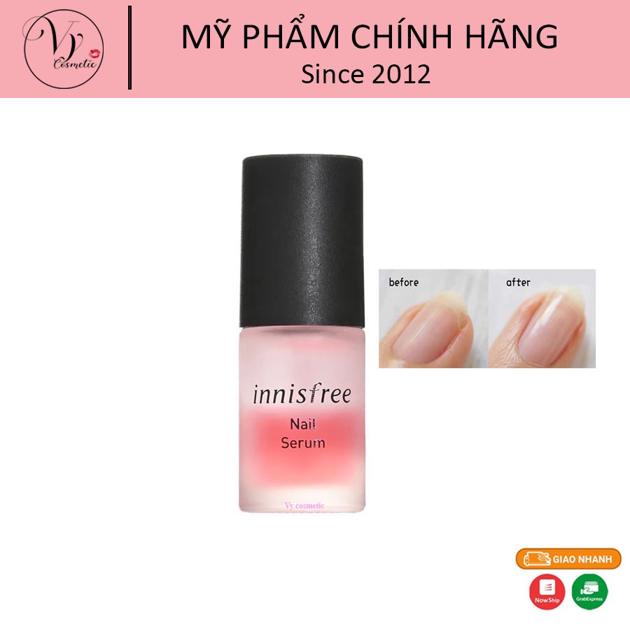 Innisfree Nail Serum là serum dưỡng móng giúp dưỡng ẩm và ngăn ngừa da không bị khô, thích hợp dùng cho móng tay yếu hoặc sử dụng sơn móng tay thường xuyên. Có nhiều bạn thường có móng tay mỏng, dễ gãy, khu vực da tay quanh móng bị khô, dễ trầy xước. Nguyên nhân dẫn đến trường hợp này là do móng tay thiếu độ ẩm, tiếp xúc với hóa chất, thay đổi nội tiết tố trong cơ thể, cắt da khóe móng tay quá sát …. Chính vì vậy, bạn nên dùng serum dưỡng cho lớp biểu bì quanh móng giúp giữ độ ẩm cho móng và lớp da xung quanh khiến móng tay trông đẹp hơn.