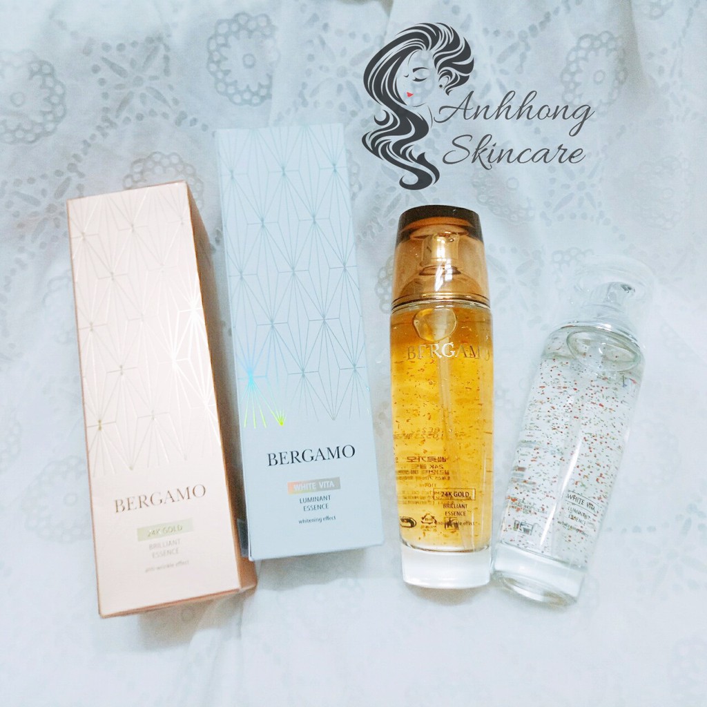 🏭 Xuất xứ: Hàn Quốc 💧 Quy cách: 110ml - Tinh Chất Dưỡng Bergamo là một sản phẩm cao cấp đến từ Hàn Quốc, cung cấp dưỡng chất giúp làn da bạn ngày càng trắng sáng lên trông thấy. Khi thoa tinh chất lên da, các tinh chất này sẽ cơ cấu và cung cấp chất dưỡng ẩm cho da làm cho da mềm mịn , nuôi dưỡng và tái tạo lại làn da lão hóa. Ngoài tác dụng dưỡng ẩm và tăng độ đàn hồi cho da, tinh chất collagen còn tái tạo làn da già nua do tuổi tác, làm trẻ hoá làn da. Sau 7 ngày sử dụng, các nàng sẽ thấy 1 làn da mềm mịn, trắng sáng và căng tràn sức sống. - Shop về 2 loại + Màu vàng: tinh chất vàng 24k -> chống lão hóa, nâng cơ, trẻ hóa da Serum BERGAMO Luxury gold được tạo thành từ một công thức mới độc đáo với tinh chất collagen và lá vàng mỏng 24k nuôi dưỡng và làm trắng da, phục hồi da tổn thương, sẹo do mụn để lại - Chiết xuất từ nhân sâm, trà xanh và tinh chất vàng giúp phục hồi da, cho bạn là da mịn màng và săn chắc