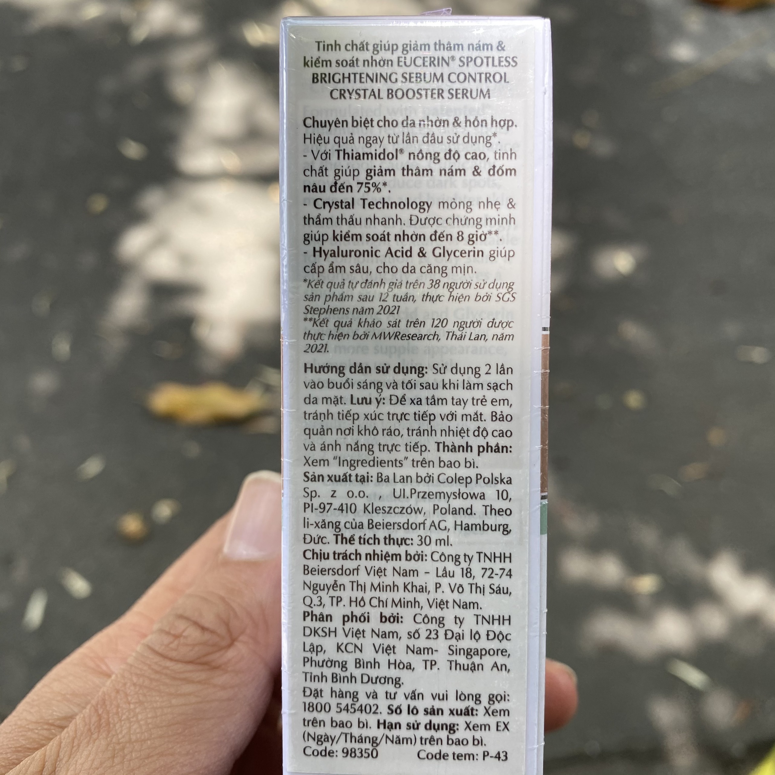 - Thiamidol: Hoạt chất độc quyền từ Eucerin, có khả năng ức chế enzyme Tyrosinase – enzyme sản sinh melanin, ngay tại gốc tế bào hắc sắc tố. Nghiên cứu chứng minh hiệu quả vượt trội nhất trong hơn 50.000 hợp chất chọn lọc khác.