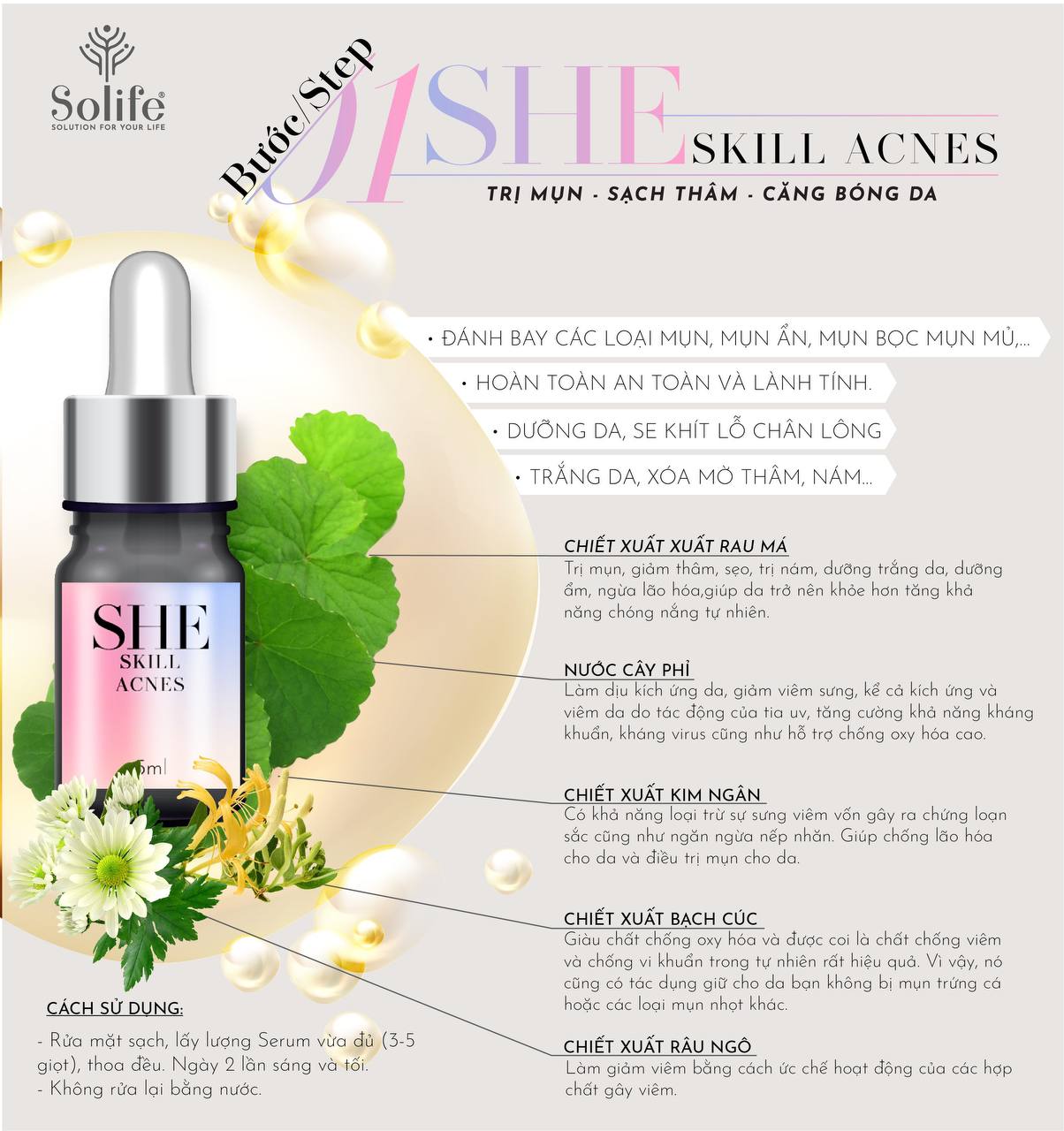 Giới thiệu Tinh Chất Hỗ Trợ Điều Trị Mụn, Mờ Vết Thâm - Giúp Nuôi Dưỡng Phục Hồi Da Hư Tổn SHE ACNES - Solife