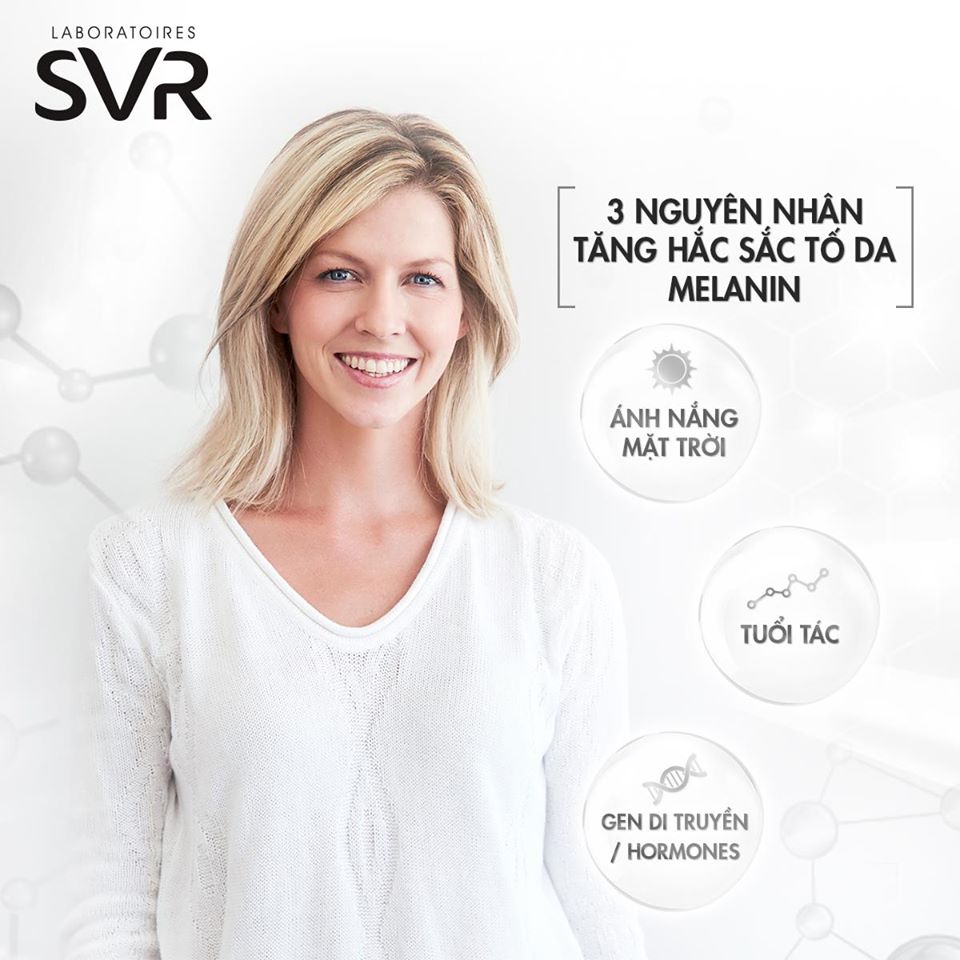 Tinh chất làm mờ vết nám da SVR clairial serum 30ml là tinh chất làm sáng da, ngăn ngừa và hỗ trợ điều trị hiệu quả thâm nám da, có thể thấy hiệu quả sau hai tuần sử dụng. Sản phẩm được cam kết tác động đến cả 3 quá trình trước, trong khi và sau khi tổng hợp melanin, giúp làm mờ và thu nhỏ vết nám một cách rõ rệt.