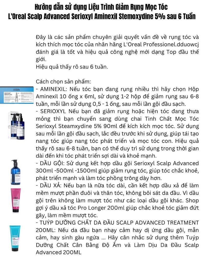 - Mọc tóc: L'Oreal Serioxyl Scalp Advanced được thiết kế để kích thích tóc mọc mạnh mẽ, giúp tóc trở nên dày hơn, bóng khỏe và mềm mại.